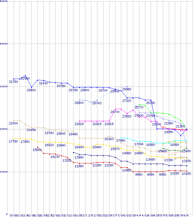 ※製品名をクリックすると個別のグラフを表示します ※点線部は販売店が確認できなかった、または調査データがないことを示します |