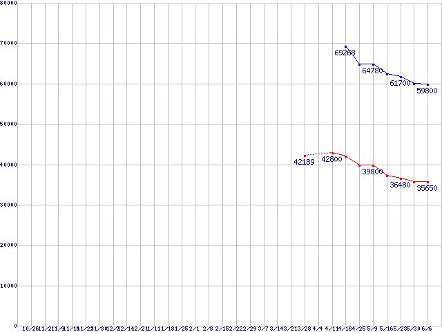 CPU主要製品(最安値3万円~6万円未満)の最安値推移