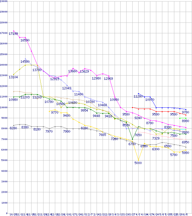 HDD/SSD主要製品(最安値1万円未満)の最安値推移