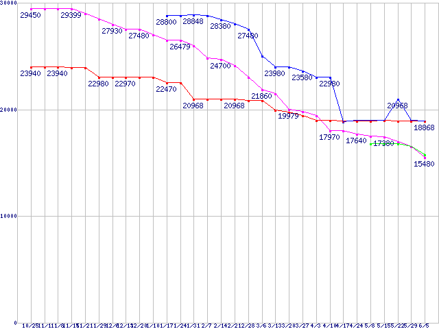 HDD/SSD主要製品(最安値1万5千円~2万円未満)の最安値推移