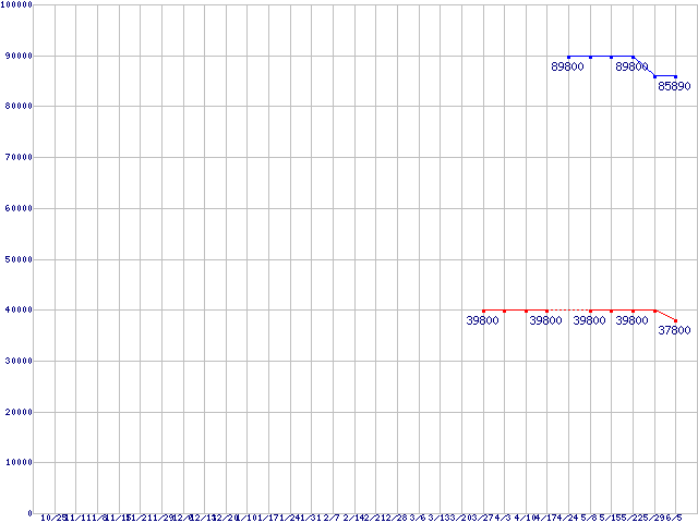 HDD/SSD 30GB~80GB未満の最安値推移