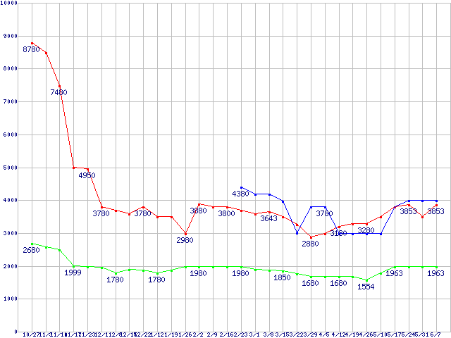 メモリ主要製品(最安値5千円~1万円未満)の最安値推移