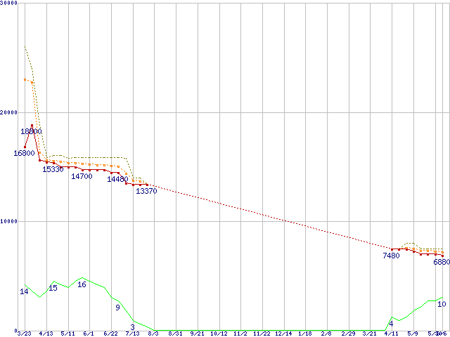| Athlon X2 4600 (2.4GHz,L2 512KB×2)の価格推移 | | | (2007年3月23日~2008年6月6日) |