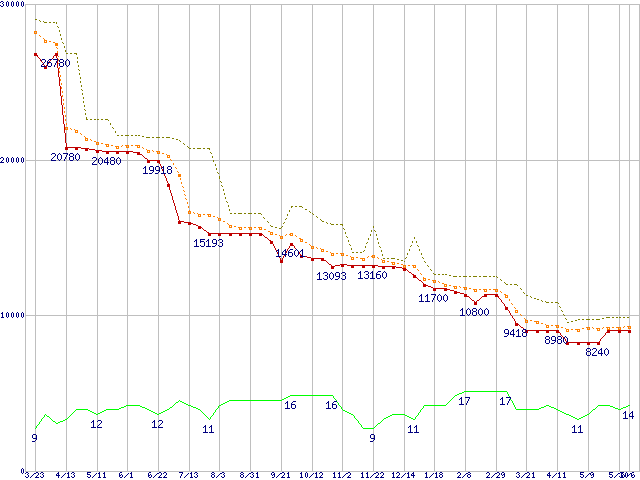 | Athlon 64 X2 5000+ (2.6GHz,L2 512KB×2)の価格推移 | | | (2007年3月23日~2008年6月6日) |