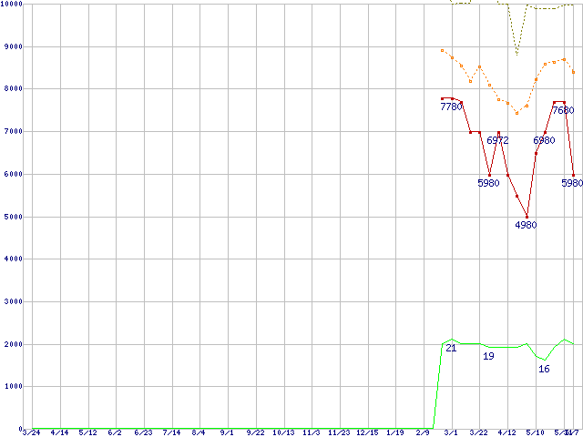 PC2-6400(DDR2-800) DDR2 SDRAM DIMMの最安値推移