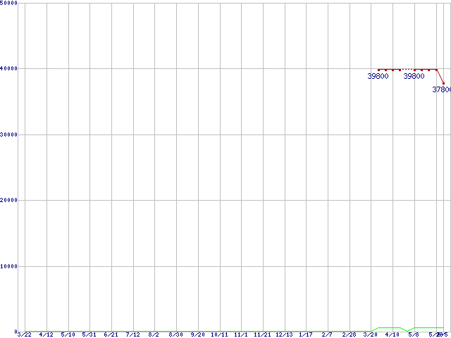 ※このグラフは過去のデータも税率5%相当に調整した税込み相当額のグラフです。 税率変更や、総額表示方式導入(2004年4月)の影響は除いています。 | | | ●凡例 | 最安値 (点線部は販売店未確認 または未調査) | 平均値 | 最高値 | ショップ数 |
