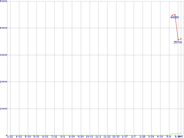 ※このグラフは過去のデータも税率5%相当に調整した税込み相当額のグラフです。 税率変更や、総額表示方式導入(2004年4月)の影響は除いています。 | | | ●凡例 | 最安値 (点線部は販売店未確認 または未調査) | 平均値 | 最高値 | ショップ数 |