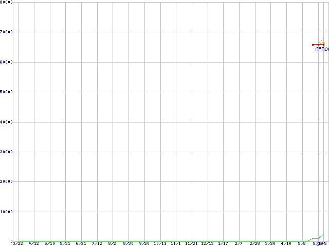 ※このグラフは過去のデータも税率5%相当に調整した税込み相当額のグラフです。 税率変更や、総額表示方式導入(2004年4月)の影響は除いています。 | | | ●凡例 | 最安値 (点線部は販売店未確認 または未調査) | 平均値 | 最高値 | ショップ数 |