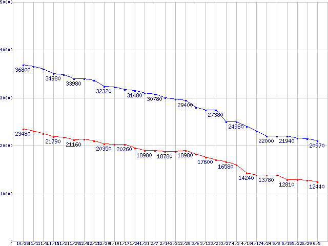 Deskstar P7K500 (7200rpm,SATA 3Gb/s)の最安値推移