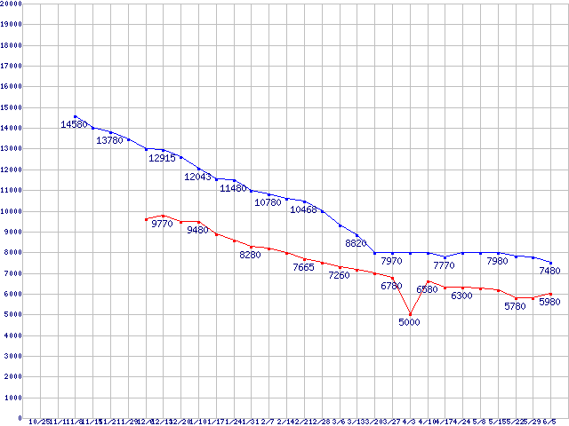 Deskstar P7K500 (7200rpm,SATA 3Gb/s)の最安値推移