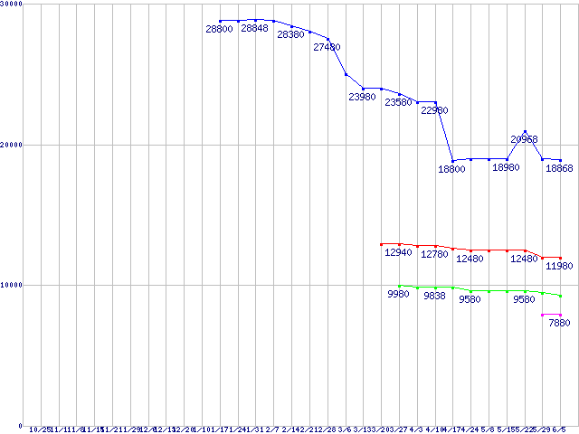 Spinpoint F1 (7200rpm,SATA 3Gb/s)の最安値推移