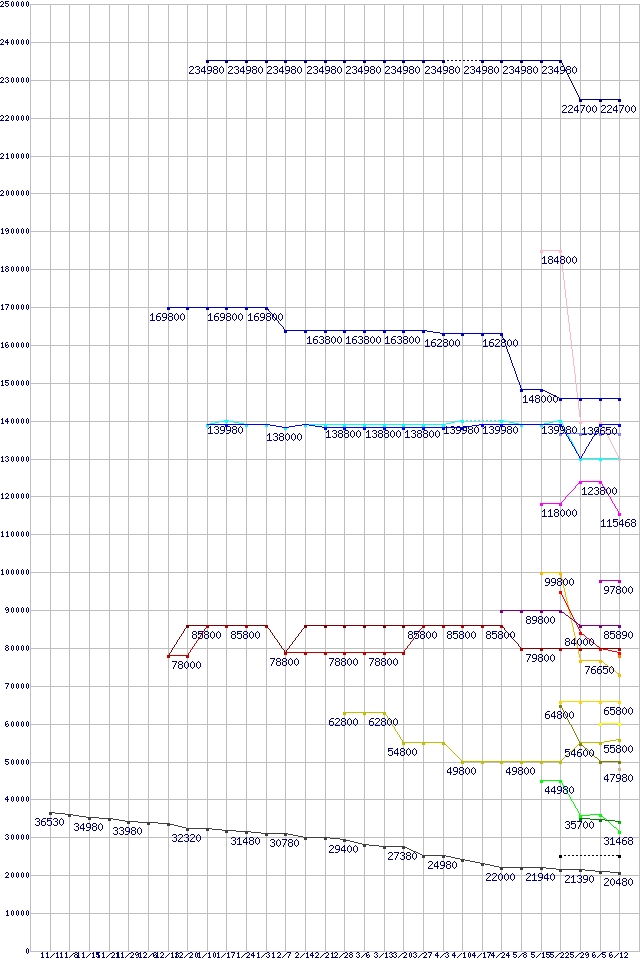 HDD/SSD主要製品(最安値2万円以上)の最安値推移