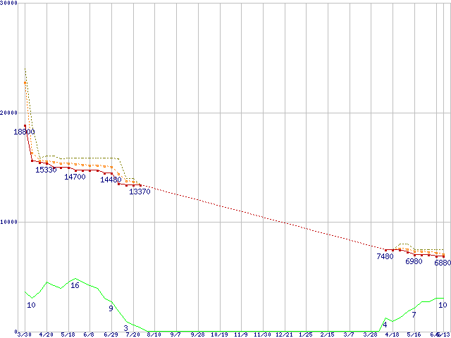 | Athlon X2 4600 (2.4GHz,L2 512KB×2)の価格推移 | | | (2007年3月30日~2008年6月13日) |