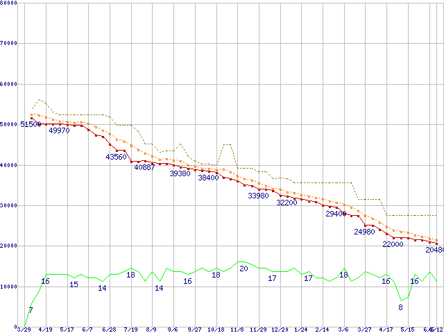 | HDS721010KLA330 (1TB,32MB)の価格推移 | | | (2007年3月29日~2008年6月12日) |