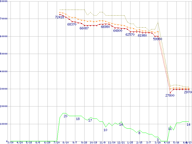 | Core 2 Quad Q6700 (2.66GHz,L2 4MB×2)の価格推移 | | | (2007年3月30日~2008年6月13日) |