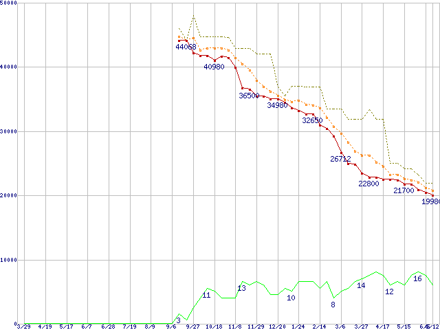 | ST31000340AS (1TB,32MB)の価格推移 | | | (2007年3月29日~2008年6月12日) |