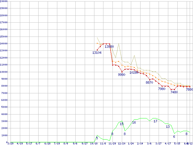 | WD5000AACS (500GB,16MB)の価格推移 | | | (2007年3月29日~2008年6月12日) |