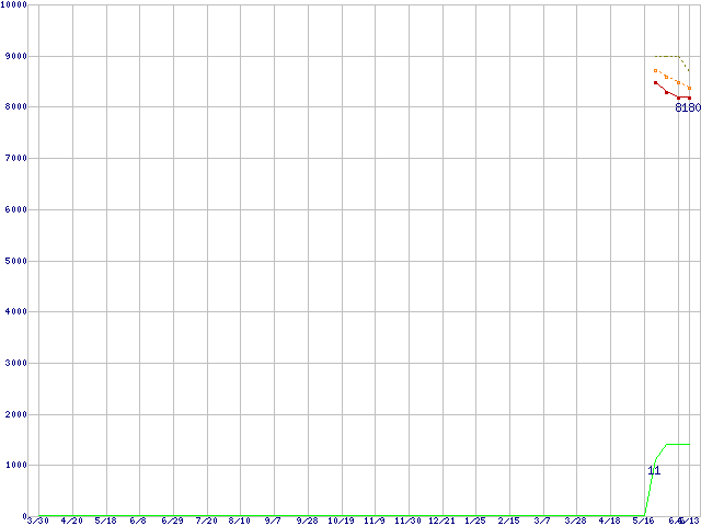 | Athlon X2 4450e (2.3GHz,L2 512KB×2)の価格推移 | | | (2007年3月30日~2008年6月13日) |