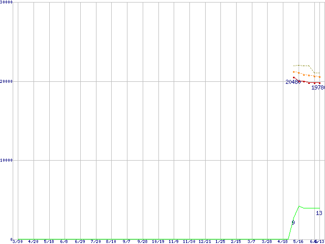 | Phenom X3 8750 (2.4GHz,L2 512KB×3,L3 2MB)の価格推移 | | | (2007年3月30日~2008年6月13日) |