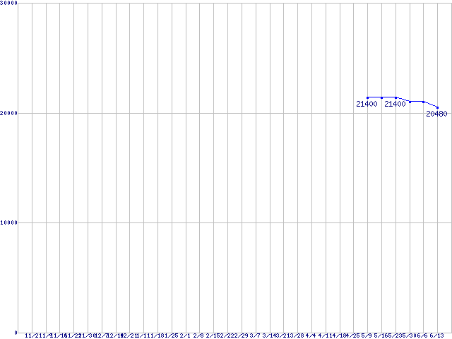 | Socket AM2 (HyperTransport 3.0,Quad Core,TDP 65W)の最安値推移 | | | (2007年11月2日~2008年6月13日) |
