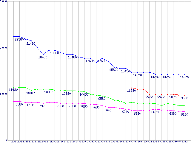 WD Caviar GP (7200rpm,SATA 3Gb/s,16MB)の最安値推移