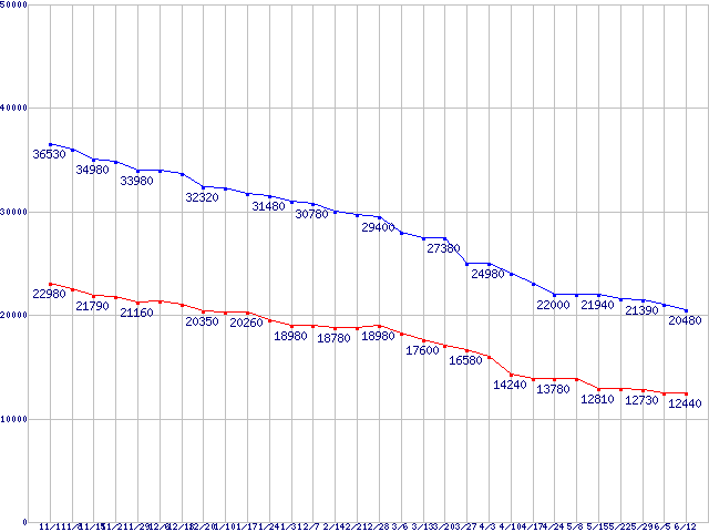 Deskstar P7K500 (7200rpm,SATA 3Gb/s)の最安値推移