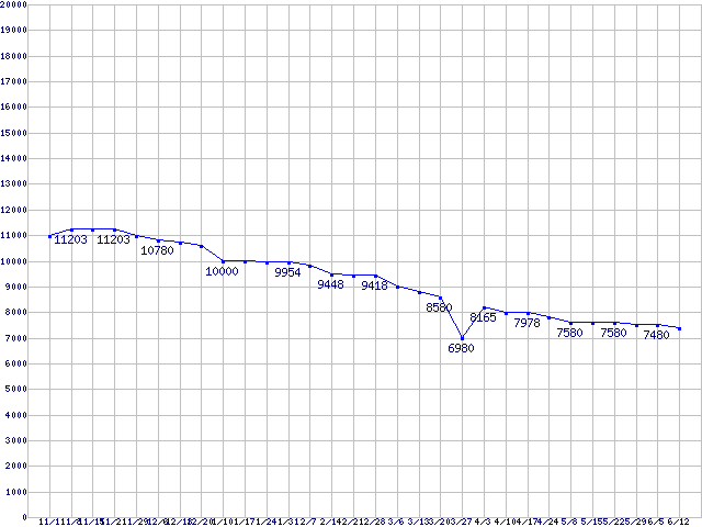 Spinpoint F1 (7200rpm,SATA 3Gb/s)の最安値推移