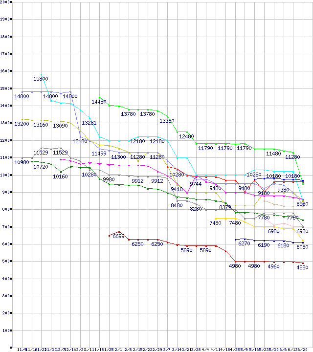 CPU主要製品(最安値1万円~2万円未満)の最安値推移