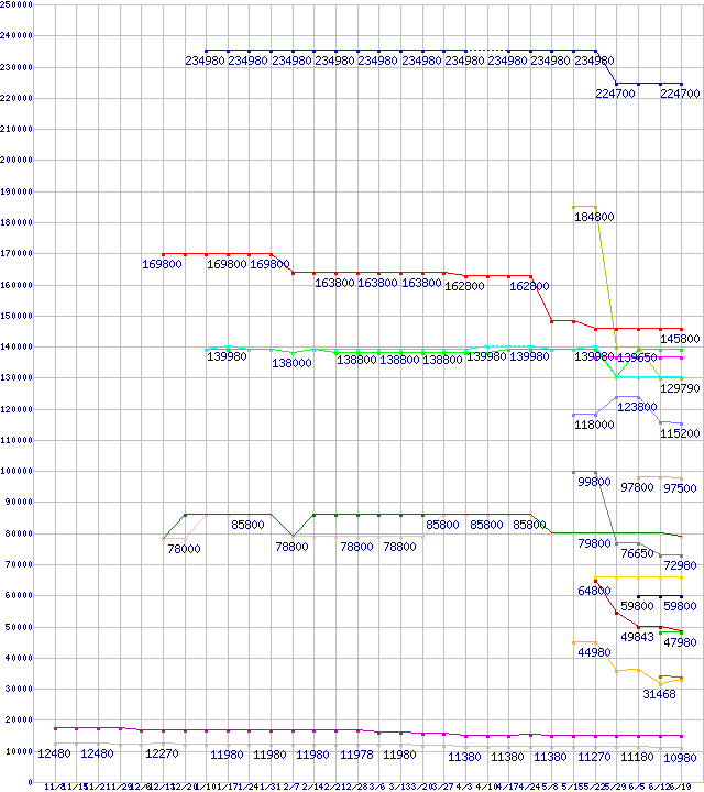 | HDD/SSD 30GB~80GB未満の最安値推移 | | | (2007年11月8日~2008年6月19日) |