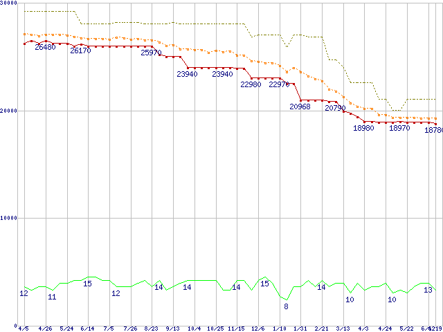 | WD1500ADFD (150.0GB)の価格推移 | | | (2007年4月5日~2008年6月19日) |