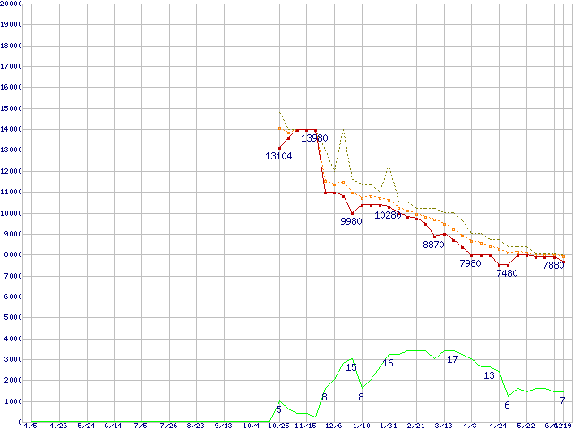 | WD5000AACS (500GB,16MB)の価格推移 | | | (2007年4月5日~2008年6月19日) |