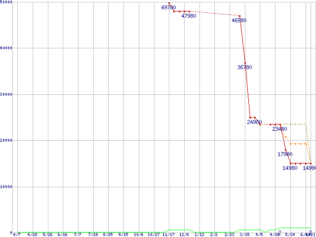 PC3-10600(DDR3-1333) DDR3 SDRAM DIMMの最安値推移