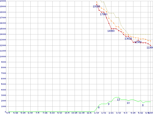 | WD7500AACS (750GB,16MB)の価格推移 | | | (2007年4月5日~2008年6月19日) |