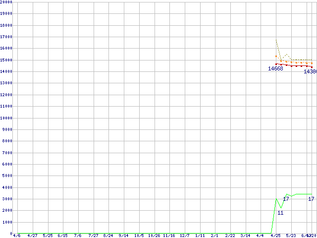 | Core 2 Duo E7200 (2.53GHz,L2 3MB)の価格推移 | | | (2007年4月6日~2008年6月20日) |