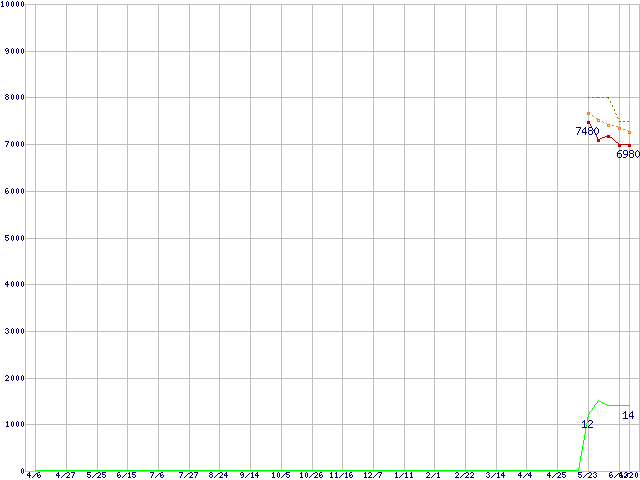 | Athlon X2 4050e (2.1GHz,L2 512KB×2)の価格推移 | | | (2007年4月6日~2008年6月20日) |