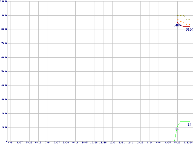 | Athlon X2 4450e (2.3GHz,L2 512KB×2)の価格推移 | | | (2007年4月6日~2008年6月20日) |