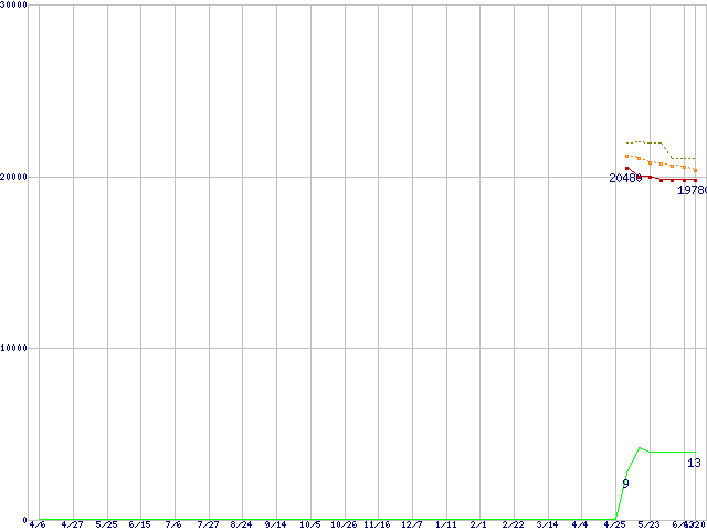 | Phenom X3 8750 (2.4GHz,L2 512KB×3,L3 2MB)の価格推移 | | | (2007年4月6日~2008年6月20日) |