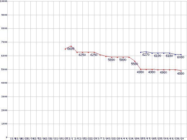 Socket AM2 (HyperTransport,Dual Core,TDP 65W)の最安値推移