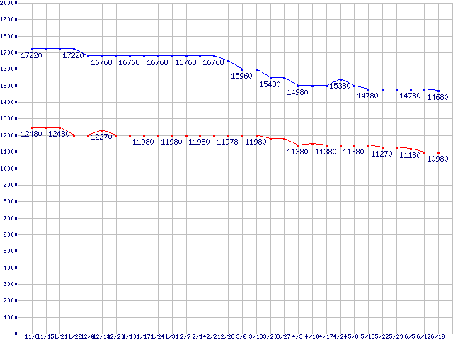 WD Raptor (10000rpm,1.5Gb/s,16MB,NCQ)の最安値推移