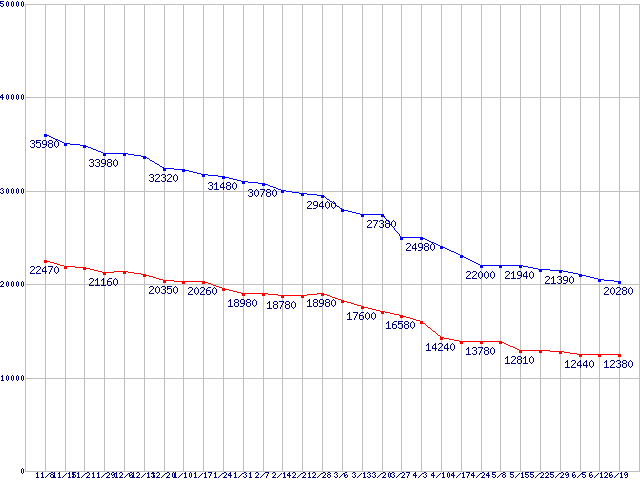 Deskstar P7K500 (7200rpm,3Gb/s)の最安値推移