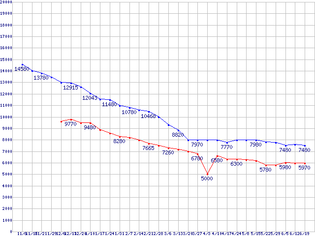 Deskstar P7K500 (7200rpm,3Gb/s)の最安値推移