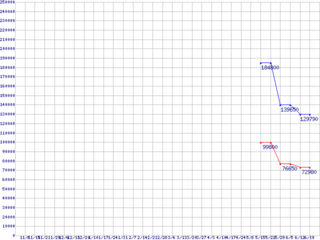| MasterDrive DX SATA-II 25 (SSD,1.5Gb/s,2.5インチ)の最安値推移 | | | (2007年11月8日~2008年6月19日) |