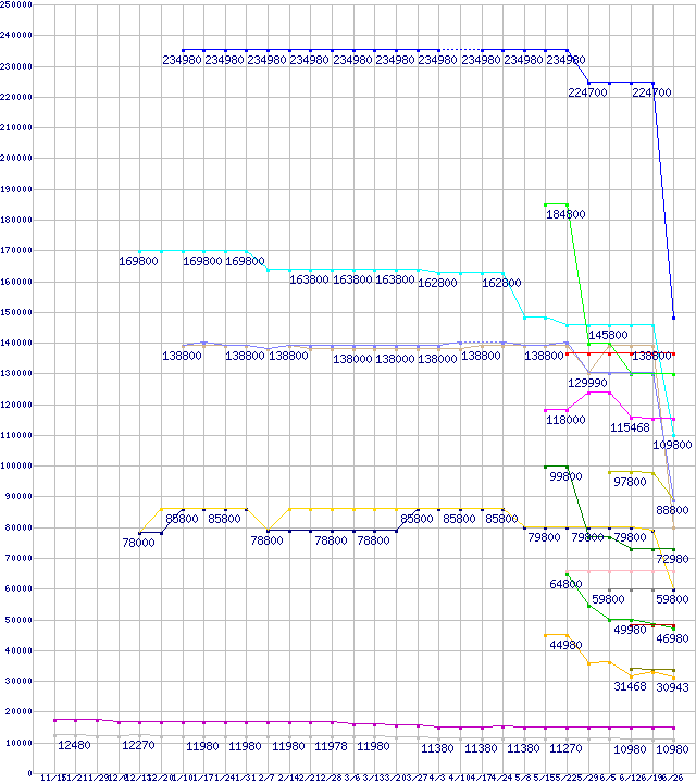 | HDD/SSD 30GB~80GB未満の最安値推移 | | | (2007年11月15日~2008年6月26日) |