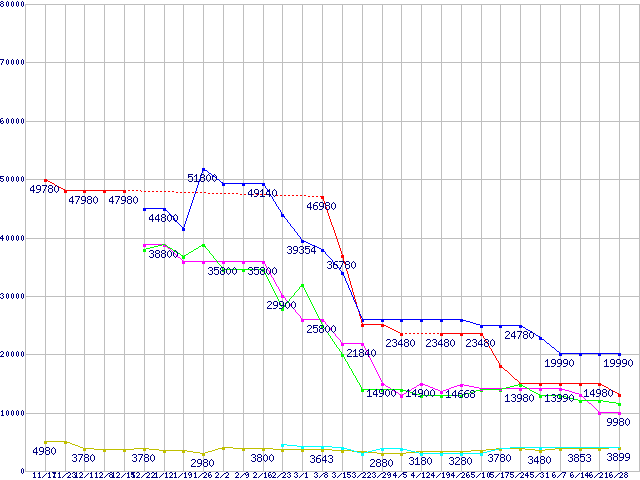 1GBモジュールの最安値推移