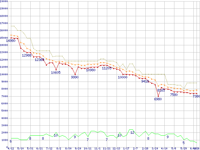 | HD501LJ (500GB,16MB)の価格推移 | | | (2007年4月12日~2008年6月26日) |