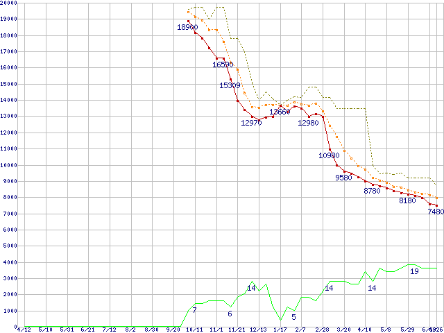 | ST3500320AS (500GB,32MB)の価格推移 | | | (2007年4月12日~2008年6月26日) |