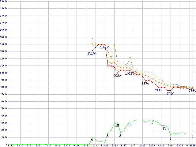 | WD5000AACS (500GB,16MB)の価格推移 | | | (2007年4月12日~2008年6月26日) |
