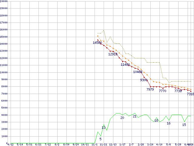 | HDP725050GLA360 (500GB,16MB)の価格推移 | | | (2007年4月12日~2008年6月26日) |