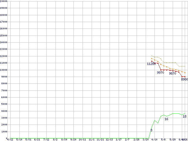| WD6400AAKS (640GB)の価格推移 | | | (2007年4月12日~2008年6月26日) |