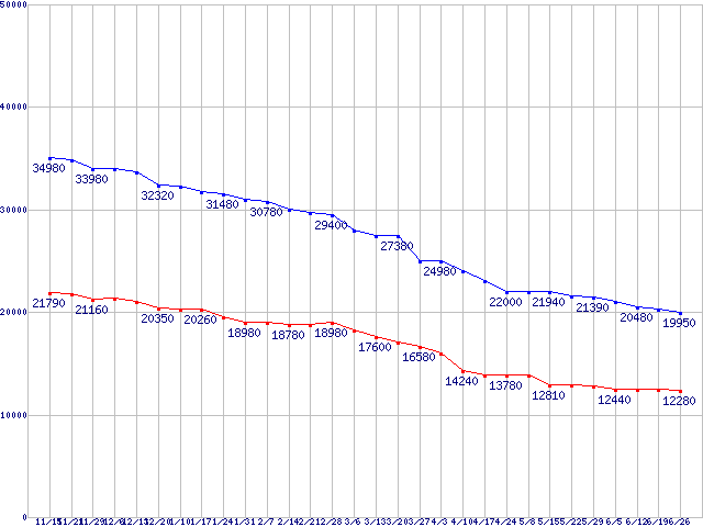 Deskstar P7K500 (7200rpm,3Gb/s)の最安値推移